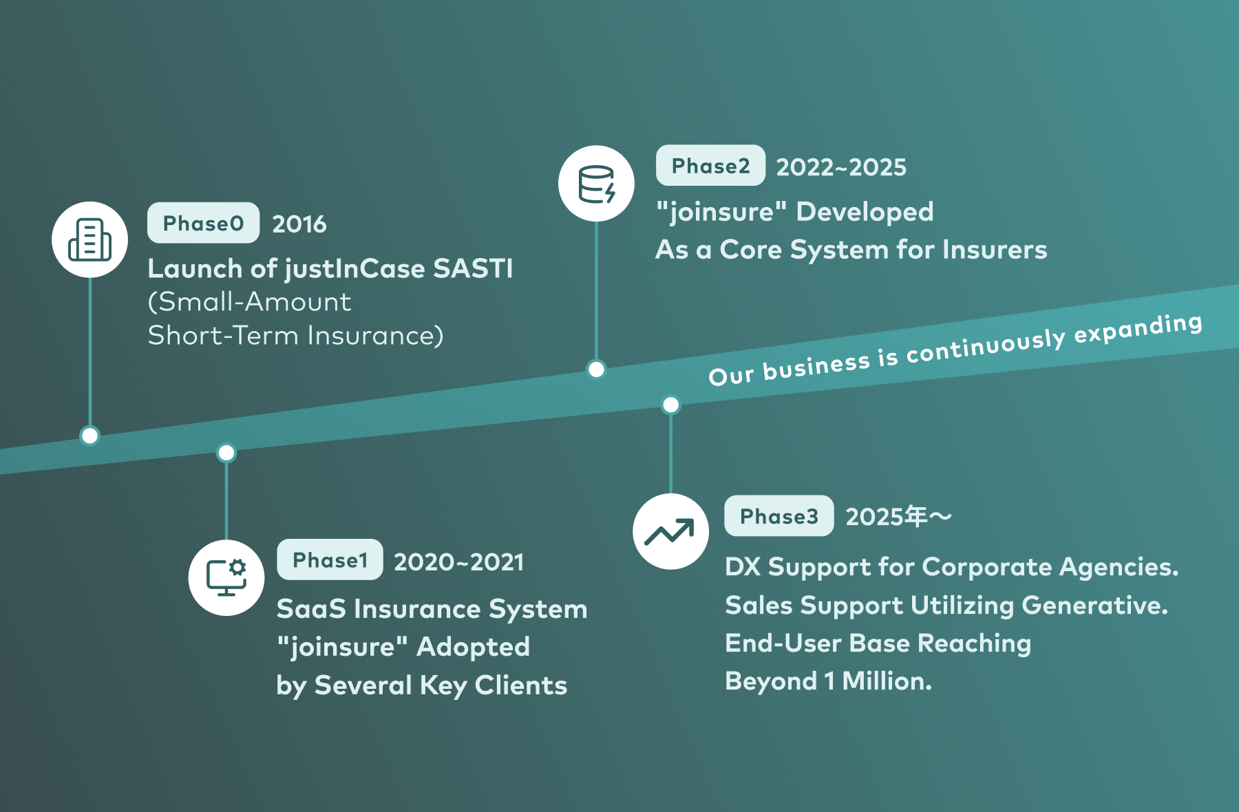 The adoption of "joinsure" as the core system by Tokio Marine X Small-Amount Short-Term Insurance Co., Ltd. was a major turning point. During this time, we also accelerated collaborations with a wide range of partners, including major solution providers, spanning diverse sectors outside of Finance.