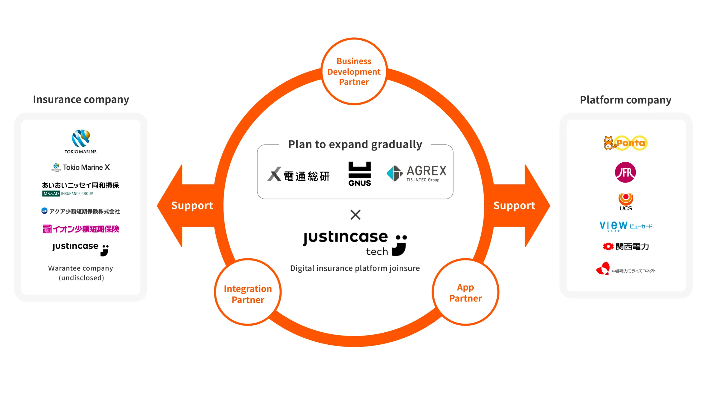 justInCaseTechnologies Inc. (headquartered in Chuo-ku, Tokyo; CEO: Kazy Hata) is pleased to announce the introduction of a new development and operation system by partnering with major solution providers to enhance the value of its SaaS-based insurance system "joinsure". The first three partners include AGREX under TIS Intec Group, DENTSU SOKEN, and GNUS.